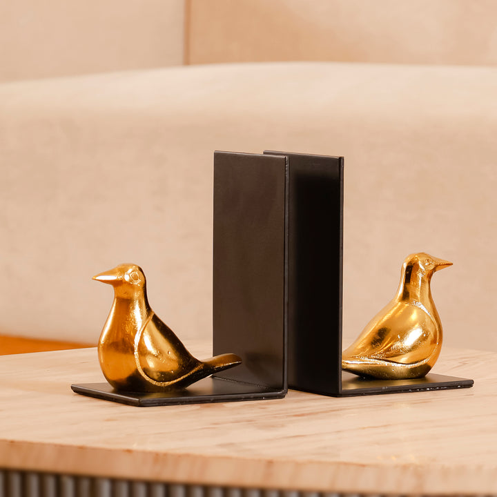 These Golden Bird Bookends beautifully combine simplicity and charm. Crafted from high-quality metal, the smooth bird silhouette adds an elegant décor cue to any space. The gold finish enhances visual appeal while the sturdy base ensures reliable support for books. Perfect for adding warmth and sophistication to living rooms, studies, bookshelves, or office desks.