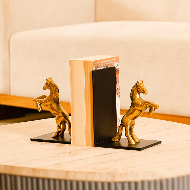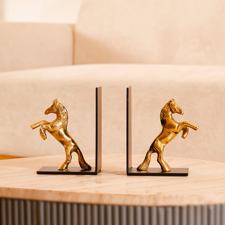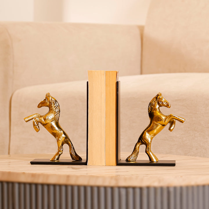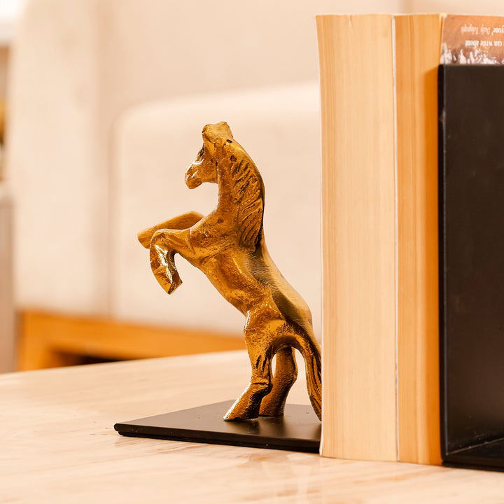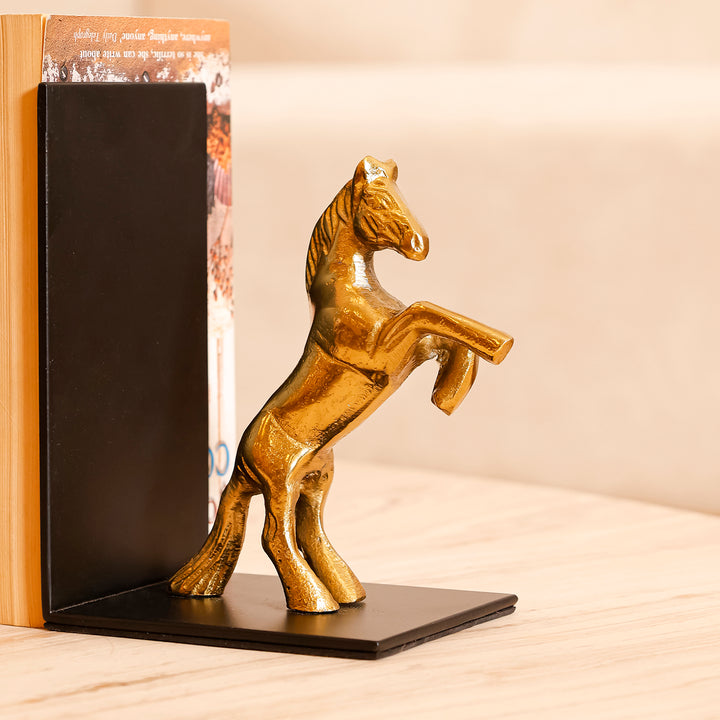 Add a touch of luxury to your bookshelf with these Golden Horse Bookends. Featuring a rearing horse design, they offer both stability and style. Crafted from durable metal with a premium gold finish, these bookends enhance any modern or classic décor. Perfect for organizing books, magazines, and files while elevating the aesthetic of your space.