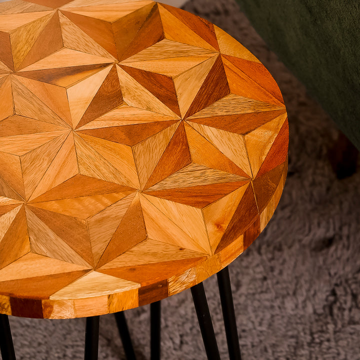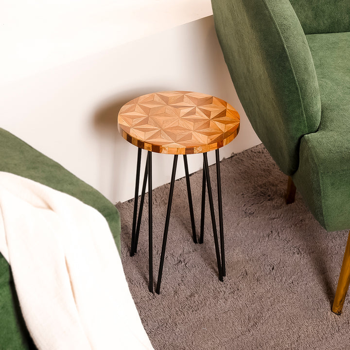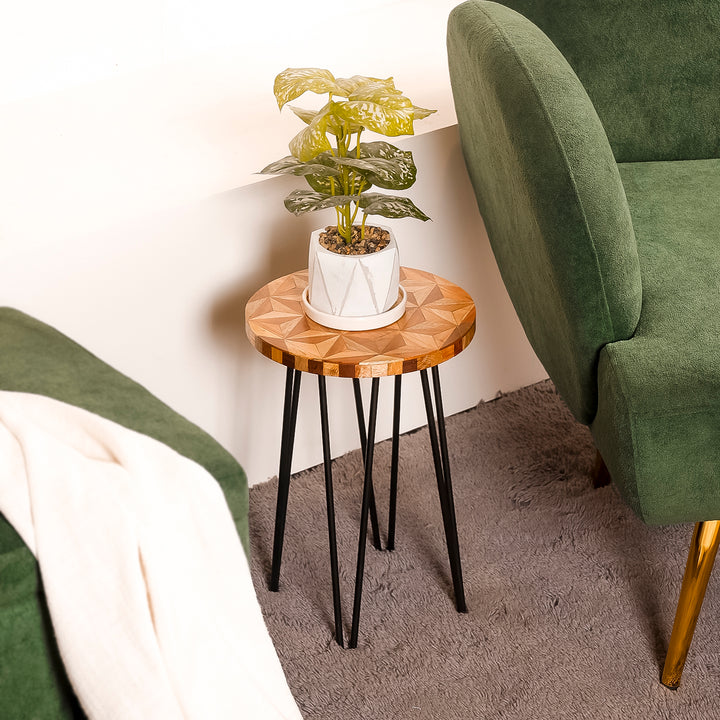 Enhance your space with Casa Decor’s geometric wooden plant stand. Designed with a carved wooden top and sturdy black metal legs, this stylish accent table works as a side table, corner stand, or indoor plant holder. Lightweight yet durable, it blends modern and traditional furniture design, making it perfect for living rooms, bedrooms, balconies, and offices.