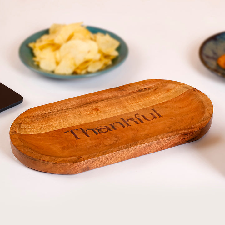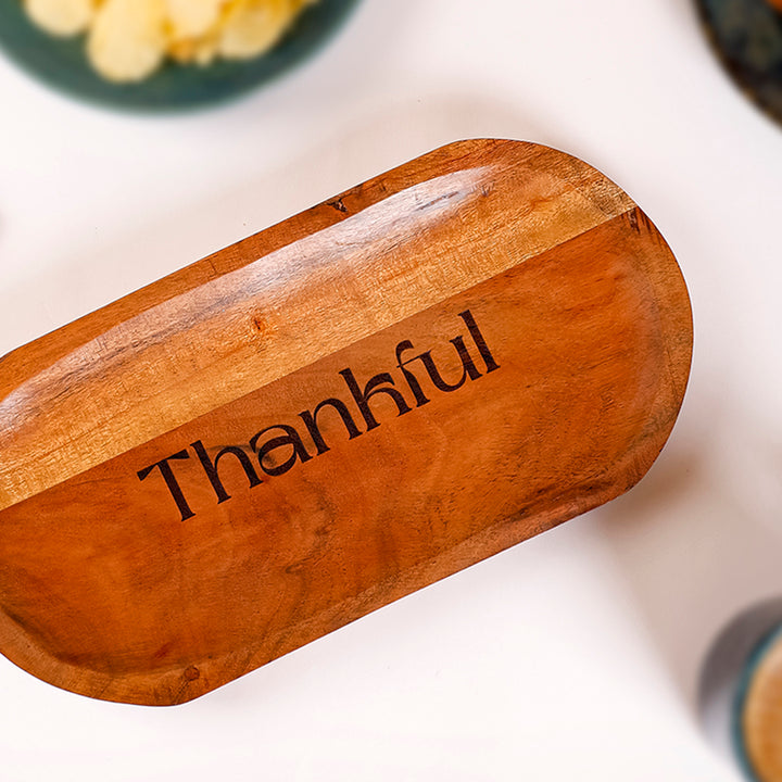 Introducing the Always Thankful Scripted Wooden Tray, a beautiful and meaningful addition to your home decor. This wooden tray features an elegantly scripted "Always Thankful" design, serving as a gentle reminder to cultivate gratitude in your daily life.