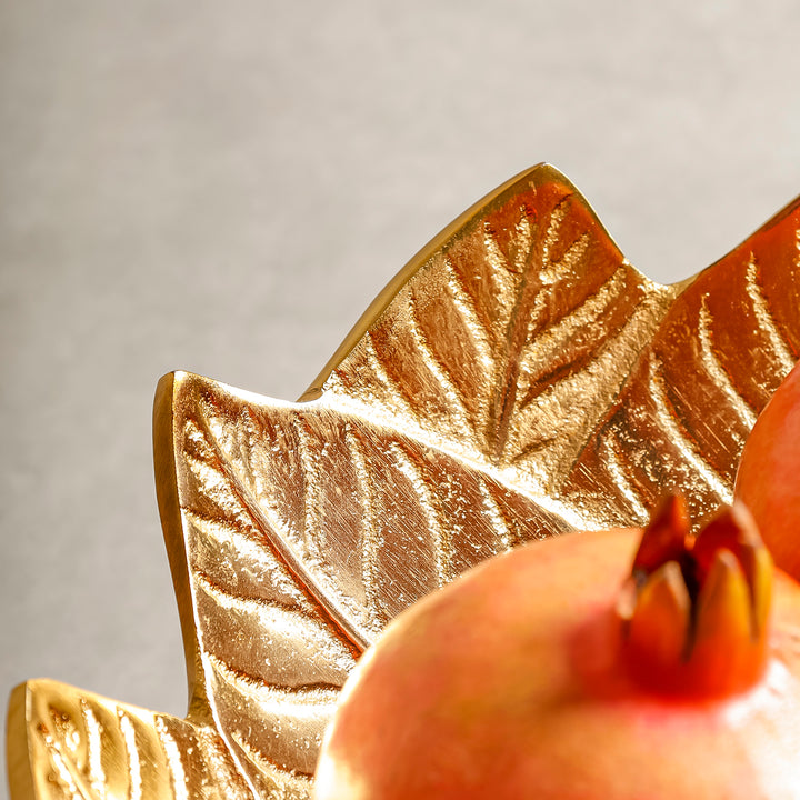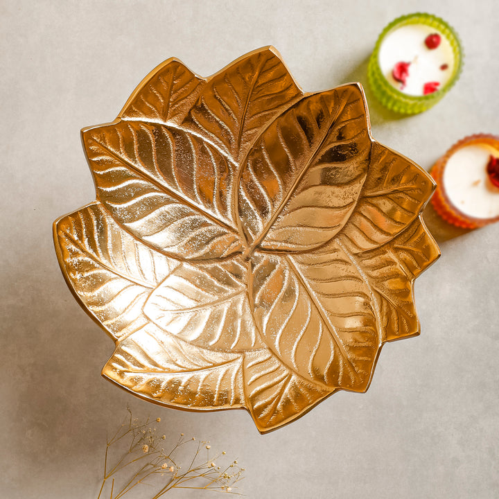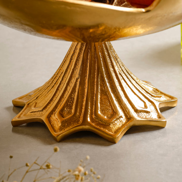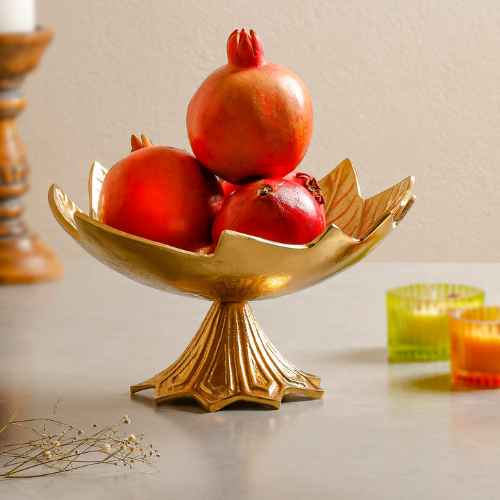 Casa Decor Gold Leaf Pedestal Aluminum Fruit Bowl
