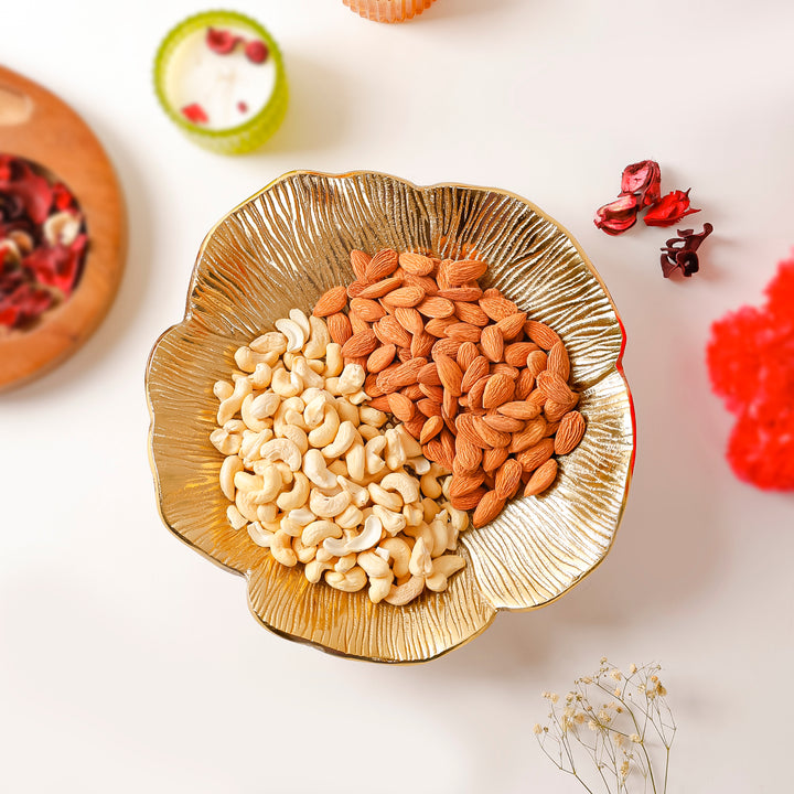 Handcrafted in premium aluminum with a gold finish, this leaf-rim pedestal bowl doubles as a fruit bowl, candy dish, or decorative centerpiece. Sturdy base, tarnish-resistant, easy to clean. Perfect for dining table, coffee table, or entry console; ideal festive gift and modern home decor accent.
