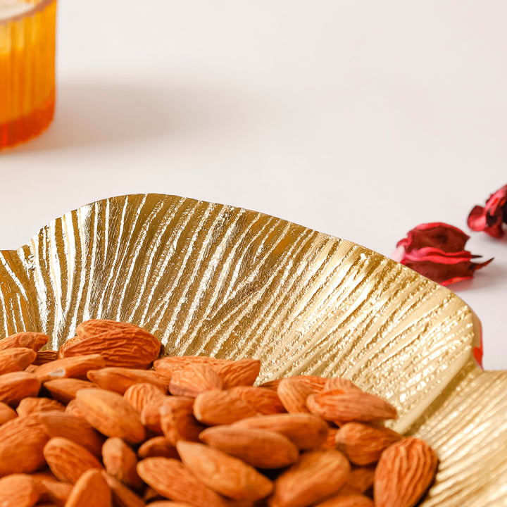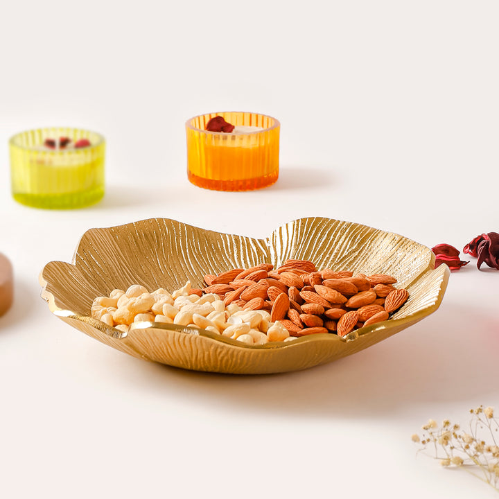 Casa Decor Gold Leaf Pedestal Aluminum Fruit Bowl