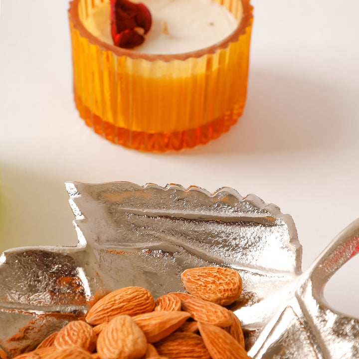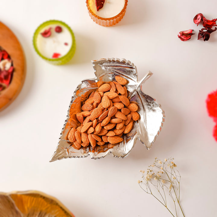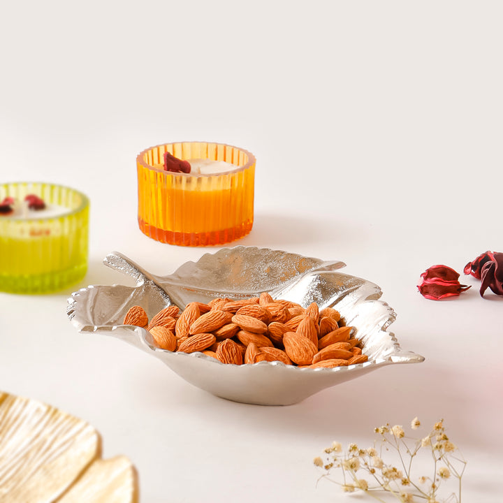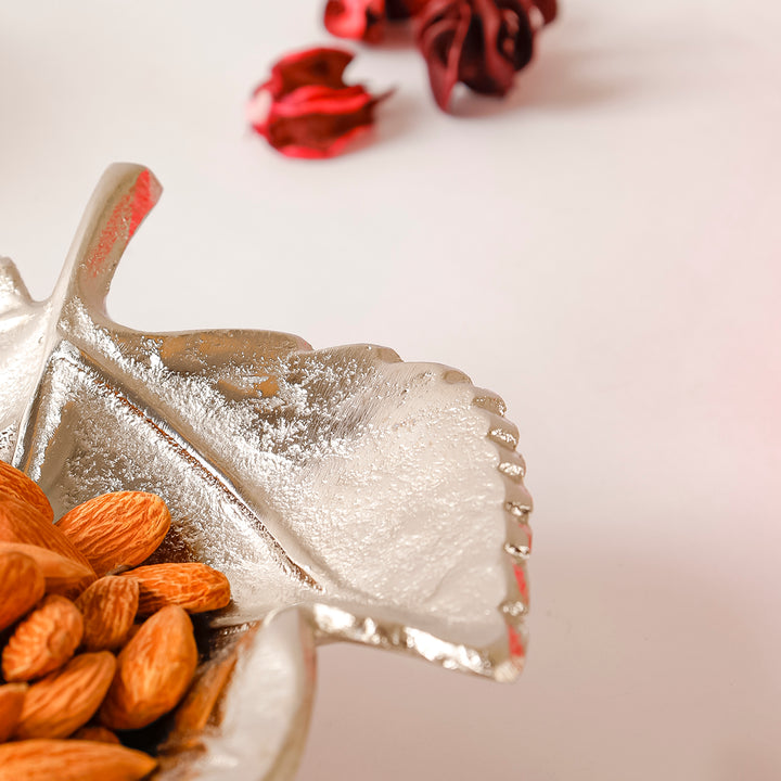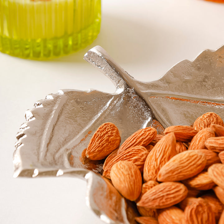 Casa Decor Leaf-Shaped Silver Metal Tray