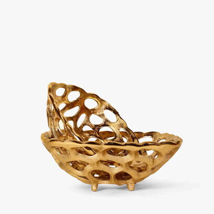 The Golden Jaali Decorative Bowl Set epitomizes elegance and charm. Crafted with intricate golden latticework, these bowls exude sophistication and style. Perfect for adding a touch of luxury to any space, each bowl boasts fine craftsmanship and attention to detail. Whether used as centerpieces or for serving, they effortlessly elevate any occasion. With their timeless design and versatile functionality, the Golden Jaali Decorative Bowl Set is a must-have for those who appreciate refined aesthetics.