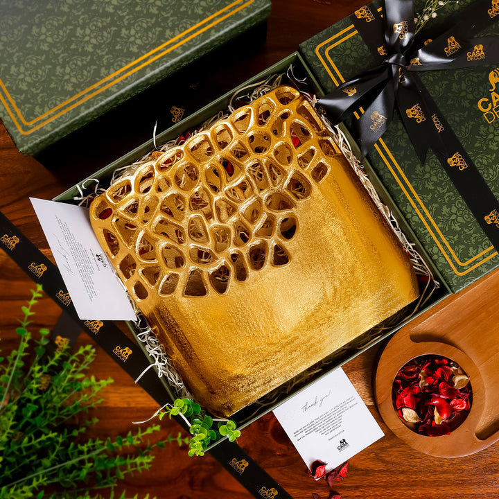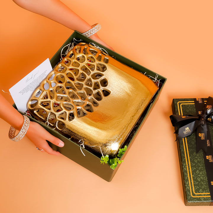 Looking for the perfect Diwali gift? This exquisite golden bowl gift box is a thoughtful choice! It features a set of elegantly crafted metal bowls with a radiant gold finish, ideal for serving sweets or simply adding a touch of luxury to any space. Perfect for gifting to friends, family, and valued clients, this festive essential will bring a warm glow to every celebration and light up the festivities in style.