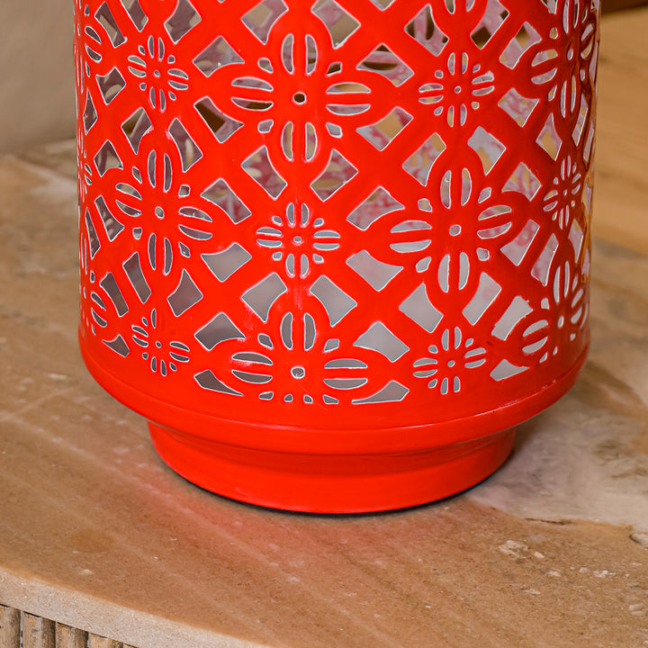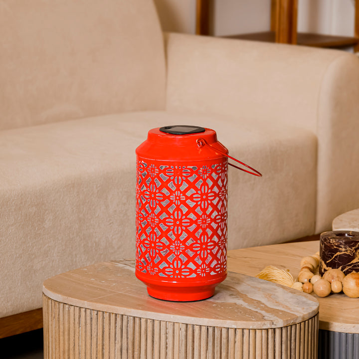 Light up evenings with Casa Decor’s Red Solar Metal Lantern. Handcrafted cutwork metal with warm LED and a top panel that charges via sunlight or regular tube lights. Cordless with carry handle, no wiring. Creates a patterned glow on balconies, patios, tables and entryways. Durable, easy to clean, and gift-ready decorative light.