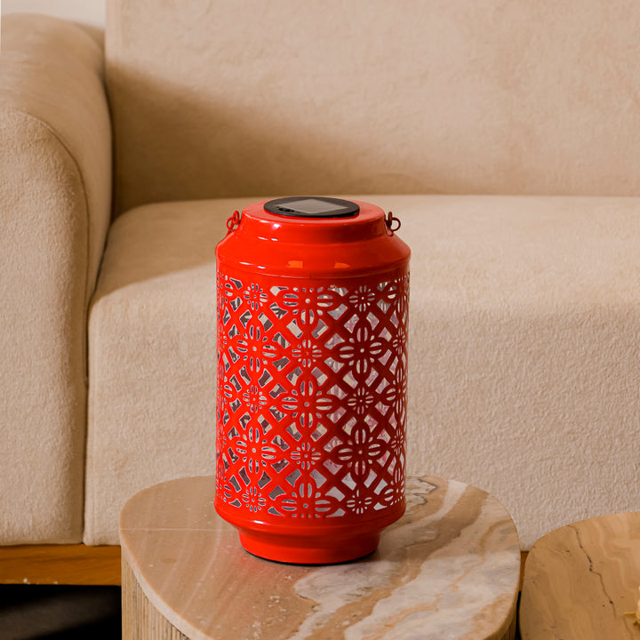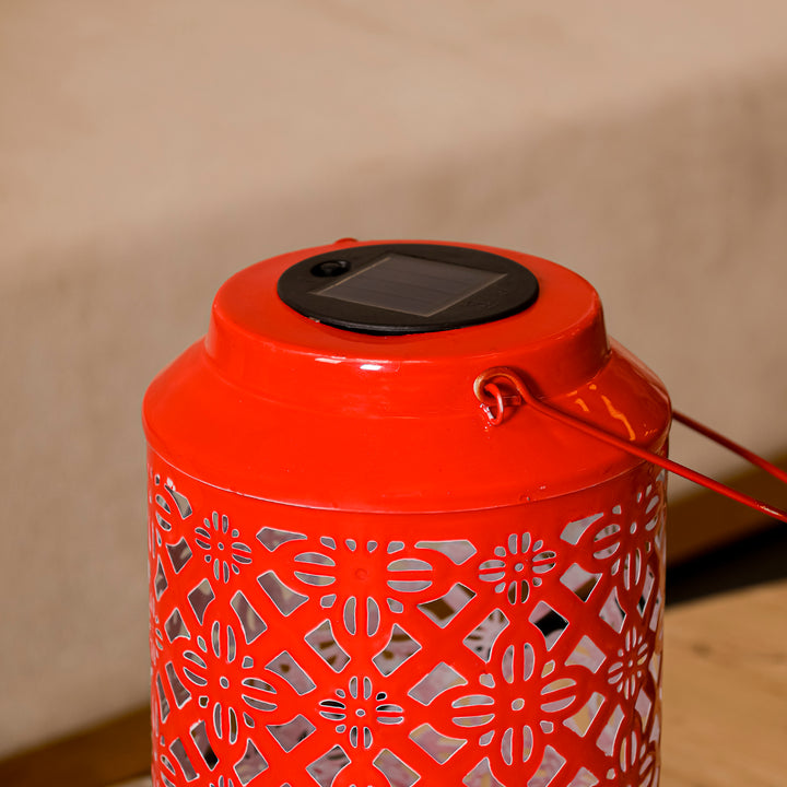 Casa Decor Solar Metal Lantern – LED Decorative Light for Balcony, Garden & Home- Red