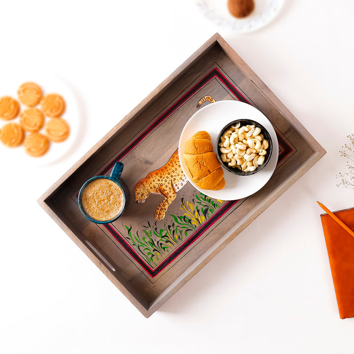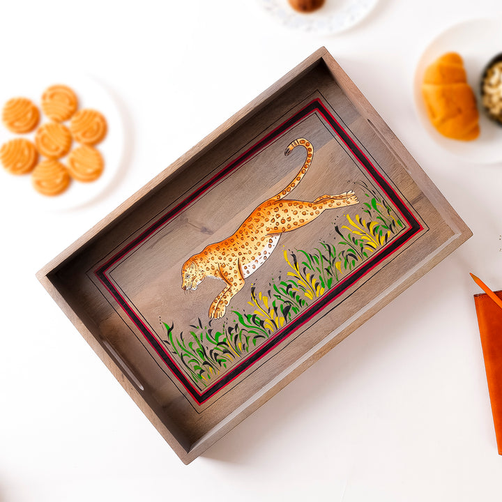 Serve up your culinary creations on this ferociously fun leopard print tray. This eye-catching essential is crafted from high-quality wood, ensuring durability and a touch of the wild for years to come.