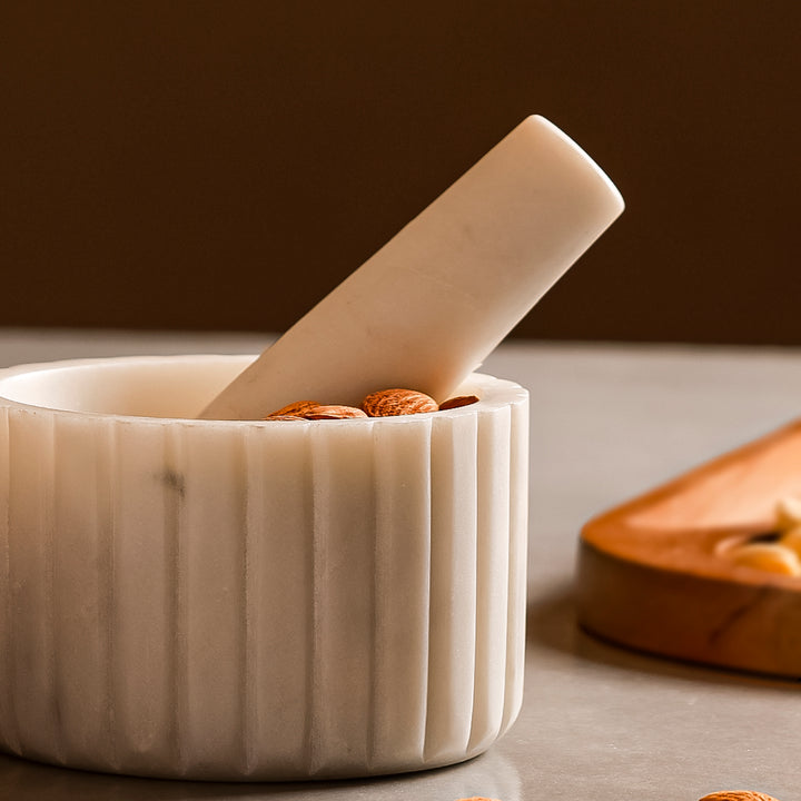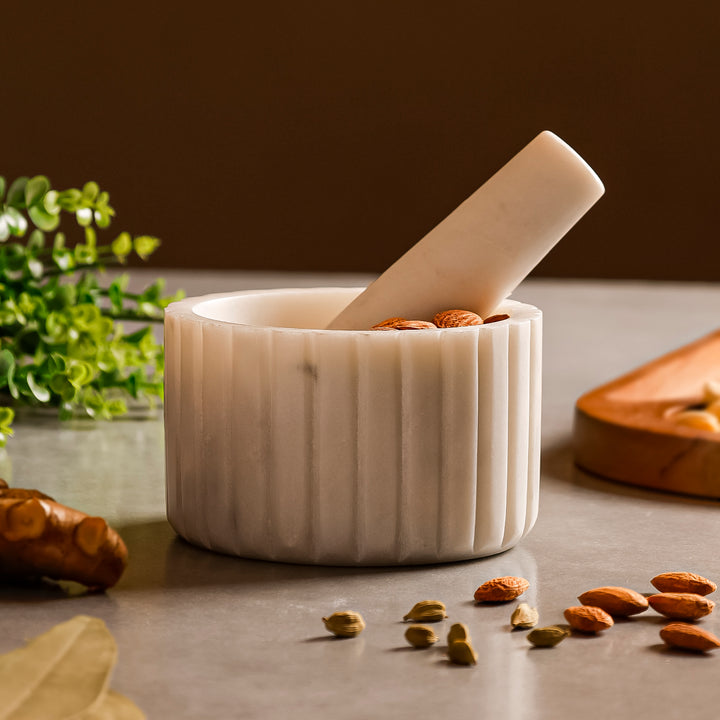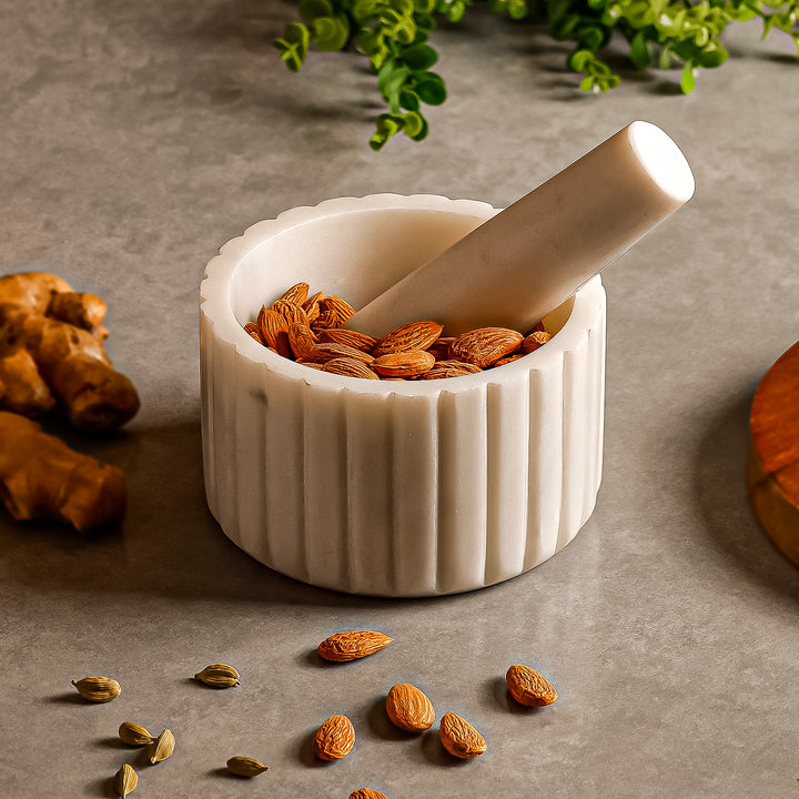 Grind spices the traditional way with Casa Decor’s White Marble Mortar & Pestle. Handcrafted from premium marble, this durable kitchen essential is perfect for crushing herbs, seeds, and masalas. A blend of utility and elegance, it doubles as a stylish kitchen and home decor piece.
