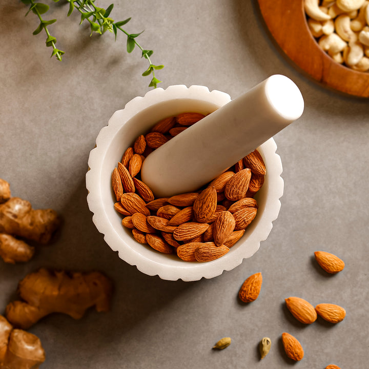 Casa Decor Marble Mortar & Pestle – Traditional Spice Grinder for Kitchen