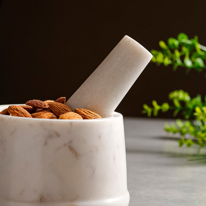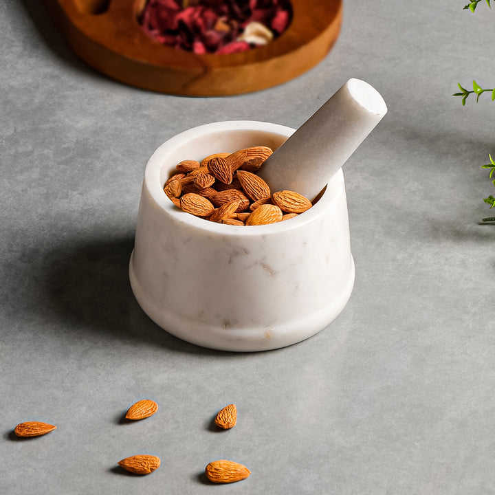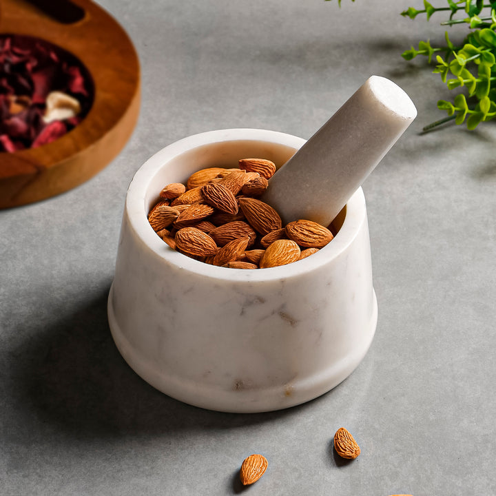Grind spices the traditional way with Casa Decor’s White Marble Mortar & Pestle. Handcrafted from premium marble, this durable kitchen essential is perfect for crushing herbs, seeds, and masalas. A blend of utility and elegance, it doubles as a stylish kitchen and home decor piece.