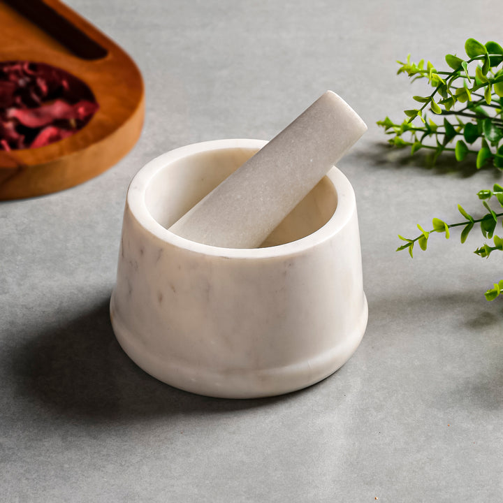 Casa Decor Marble Mortar & Pestle – Traditional Spice Grinder for Kitchen