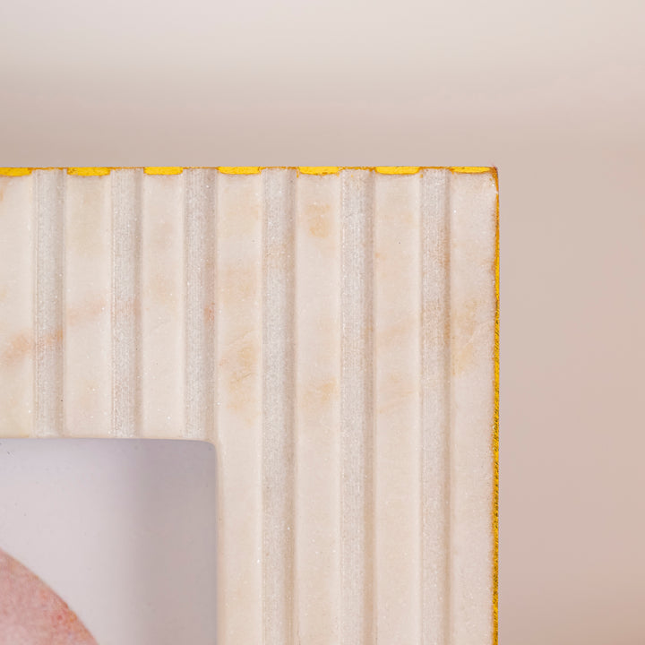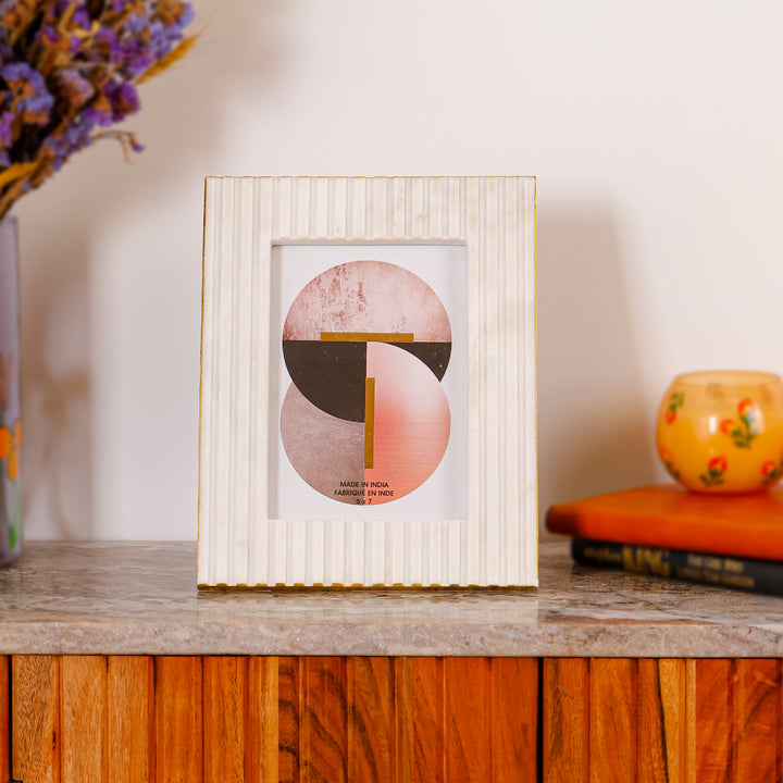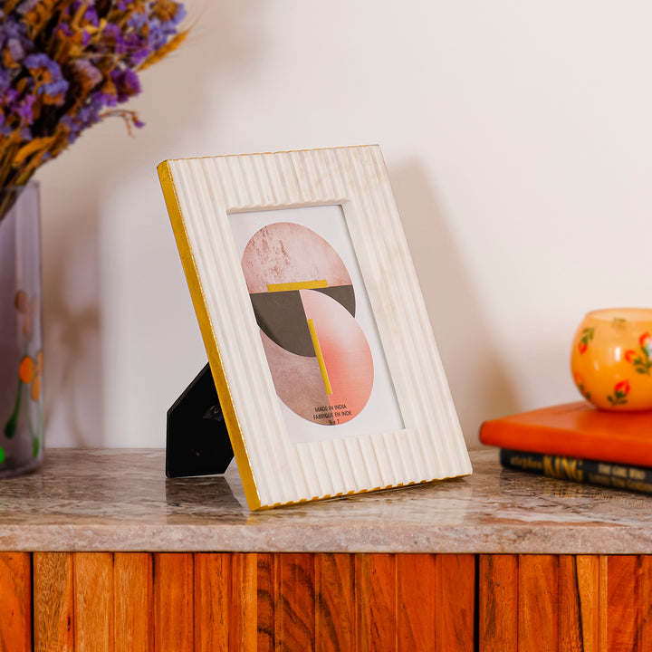 Elevate your home décor with this elegant white ribbed photo frame, crafted from high-quality resin material for durability and a premium finish. The frame features soft beige tones with subtle gold accents, adding a modern yet warm aesthetic to any space. Perfect for displaying photos, prints, or artwork, it blends beautifully with contemporary, minimalistic, and Scandinavian interiors. Its smooth texture and sturdy build make it ideal for living rooms, bedrooms, offices, and tabletops.