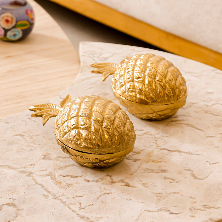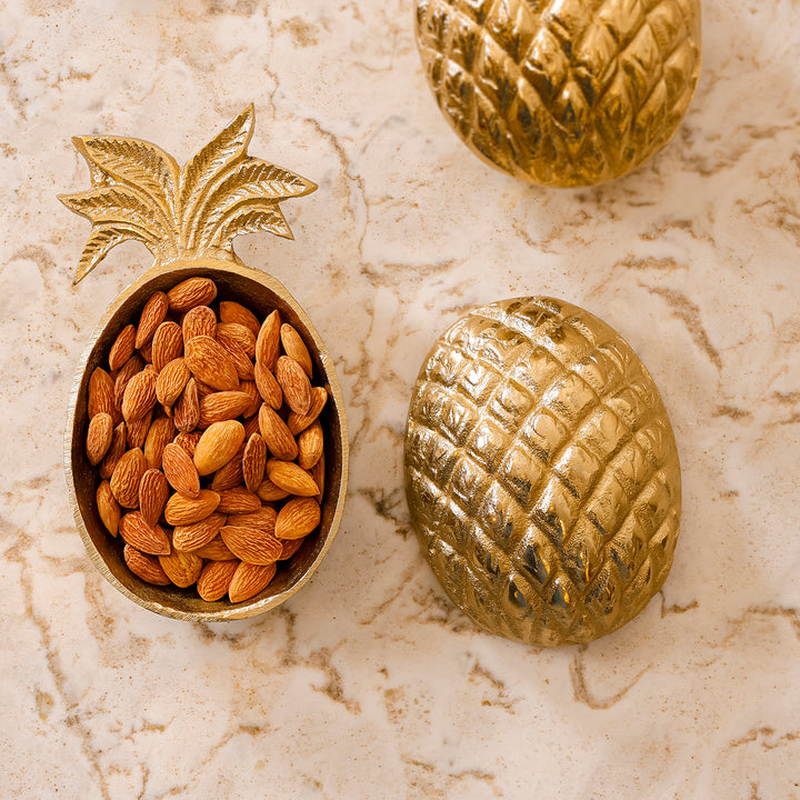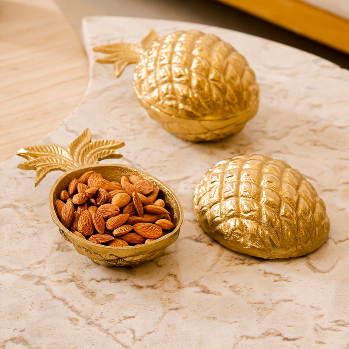 Casa Decor Pineapple Metal Dry Fruit Box – Gold Decorative Bowl with Lid