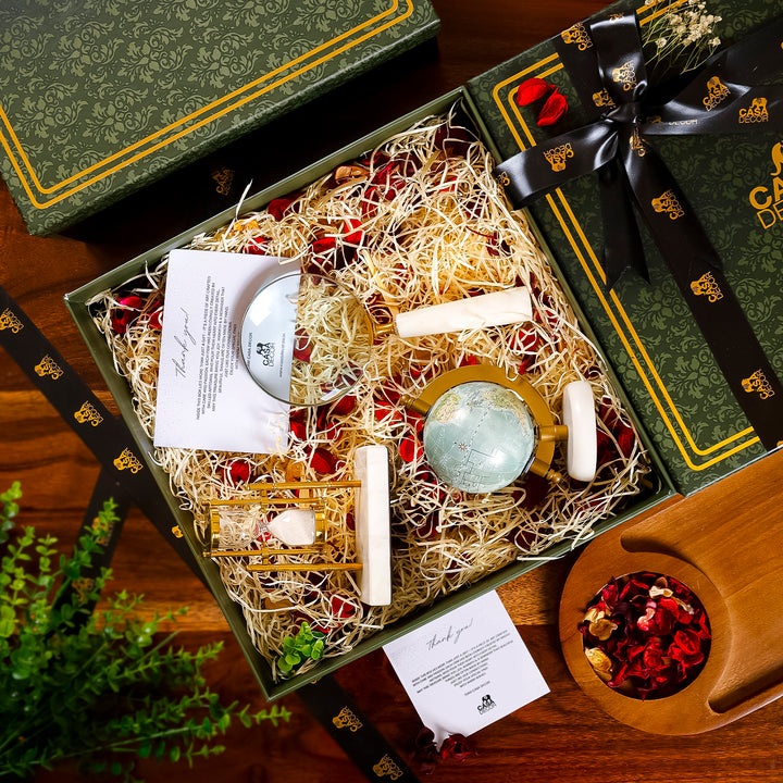 Casa Decor Premium Gift Box with Globe, Sand Timer & Magnifying Glass