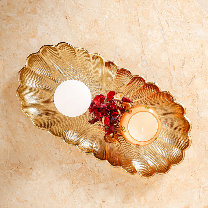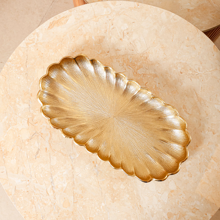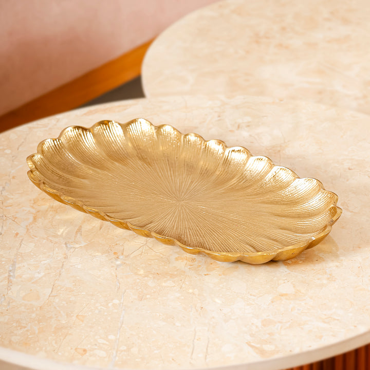 Casa Decor Premium Gold Scalloped Leaf Tray for Table Décor & Serving