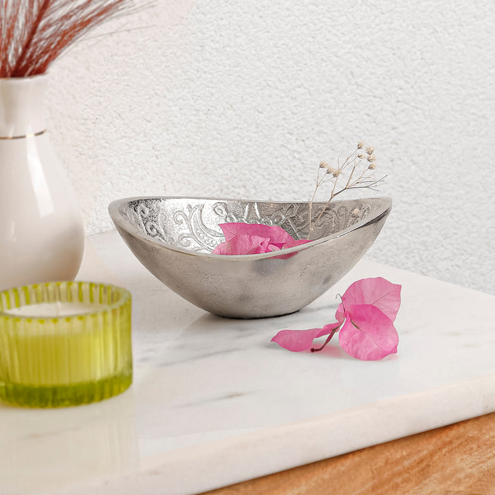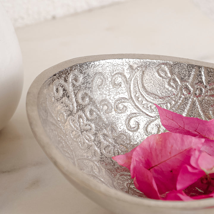 Covered in intricate traditional patterns, these silver metal bowls are designed to add a touch of royal indulgence to your meals. Perfect for small servings and Indian desserts, these serveware accessories will create a tempting visual for everything that is displayed in them.