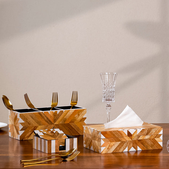 Casa Decor Table Organizer Set with Caddy, Tissue Box & Coasters Set of 3