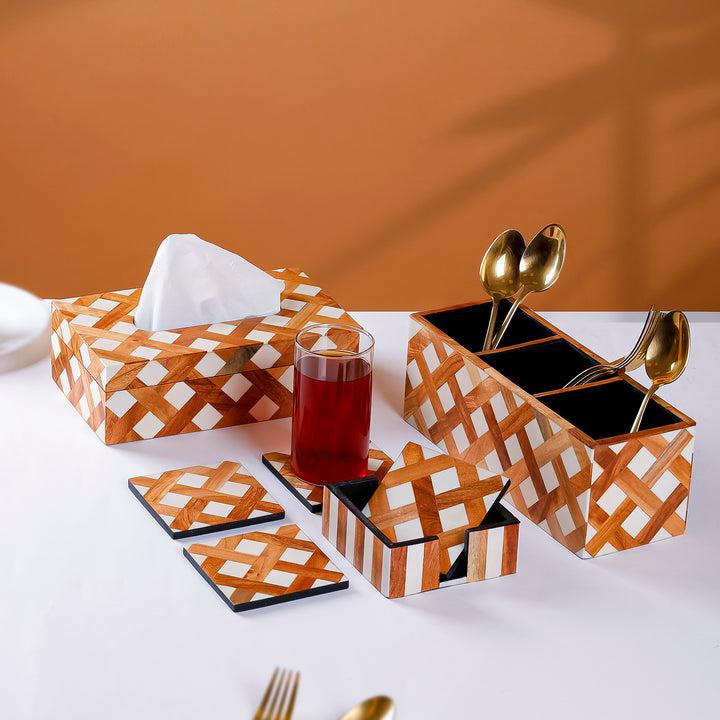 In The Box - 1 Caddy, 1 Tissue Box, Set of 4 Coasters with Caddy